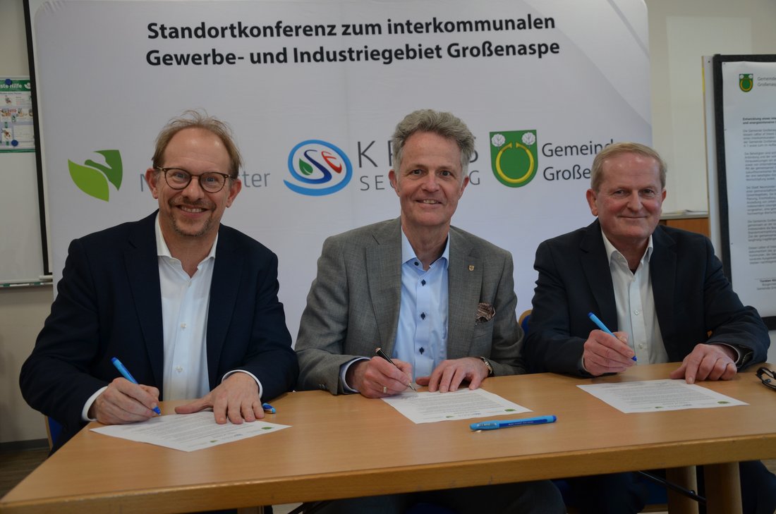 Die Gemeinde Großenaspe, die Stadt Neumünster und der Kreis Segeberg haben entschieden, die Standortentwicklung in Großenaspe voranzutreiben. Im Rahmen einer Standortkonferenz unterzeichneten Bürgermeister Thorsten Klinger, Oberbürgermeister Tobias Bergmann und Landrat Jan Peter Schröder einen entsprechenden Letter of Intent.